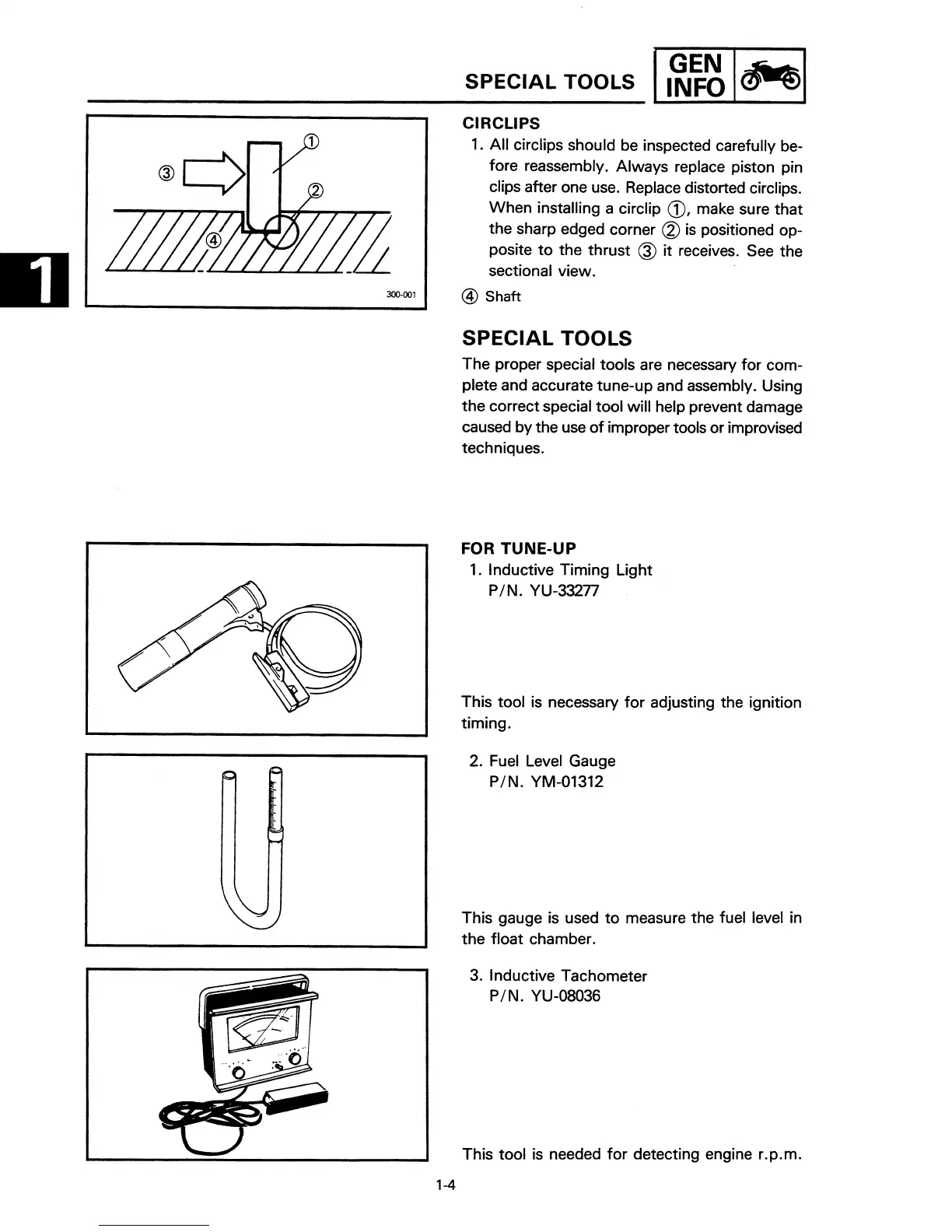 Yamaha TW200/E - Special Tools; Circlips; For Tune-Ups