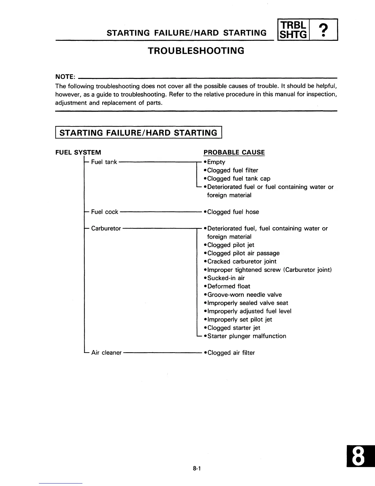 Yamaha TW200/E - Troubleshooting; Starting Failure;Hard Starting