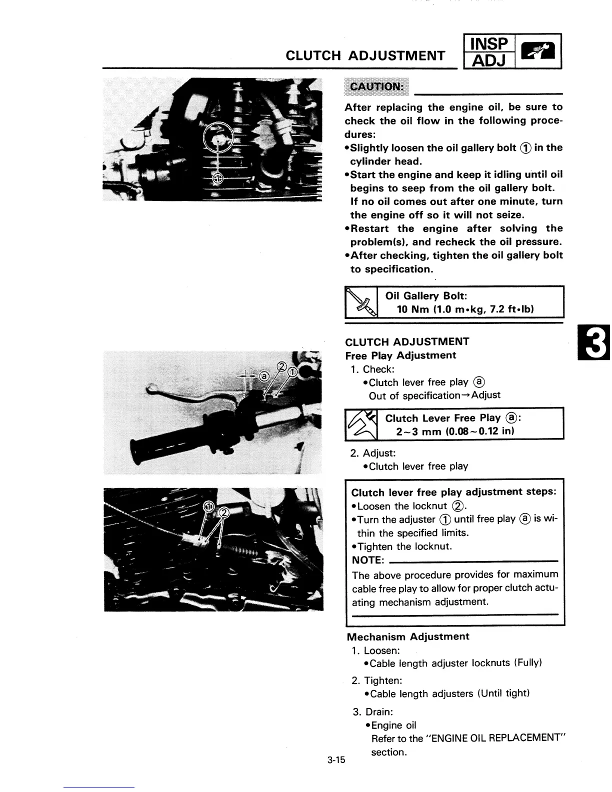 Yamaha TW200/E - Clutch Adjustment; Free Play Adjustment; Mechanism Adjustment