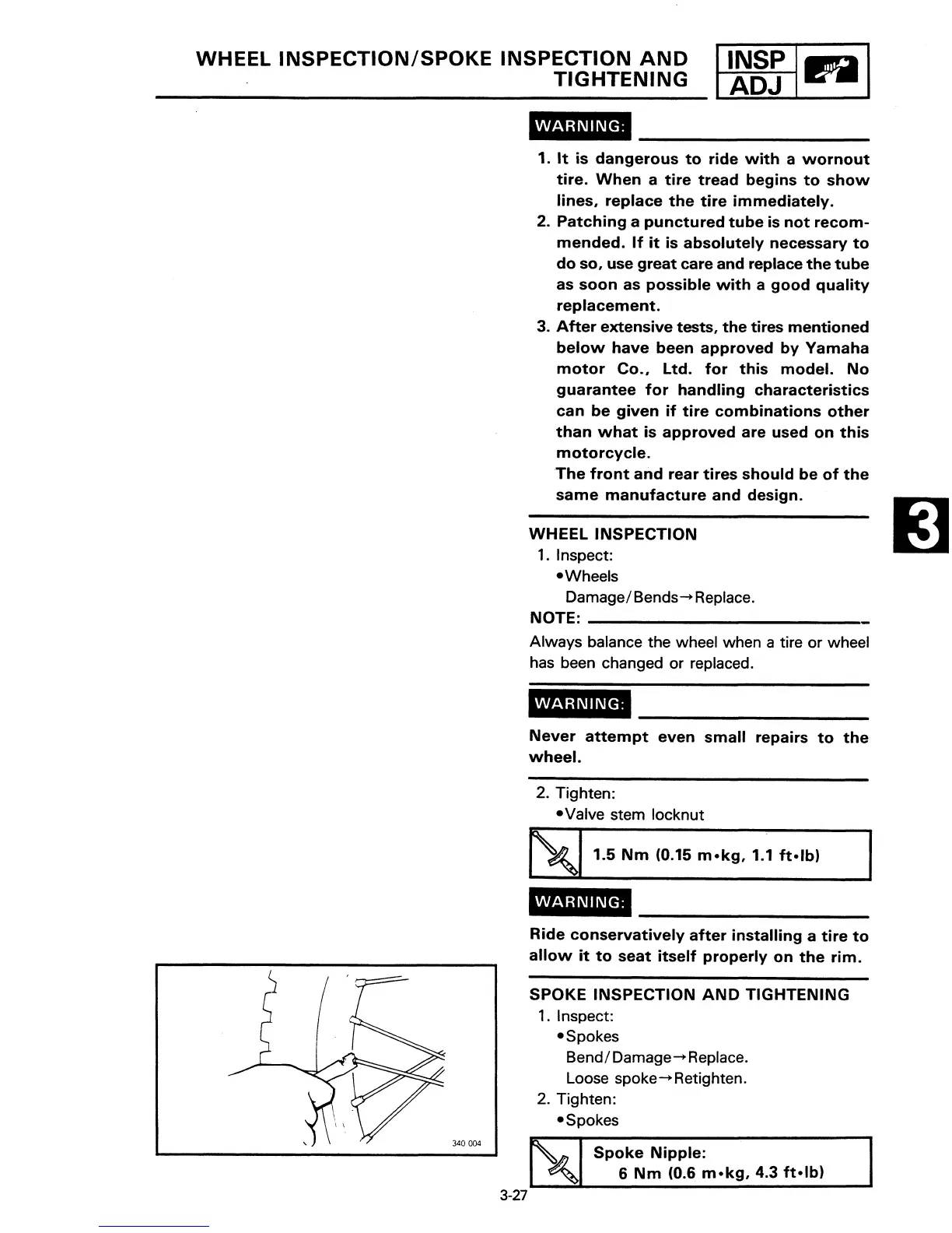 Yamaha TW200/E - Wheel Inspection; Spoke Inspection and Tightening