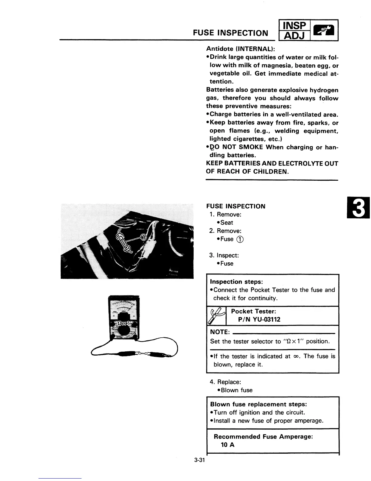 Yamaha TW200/E - Fuse Inspection