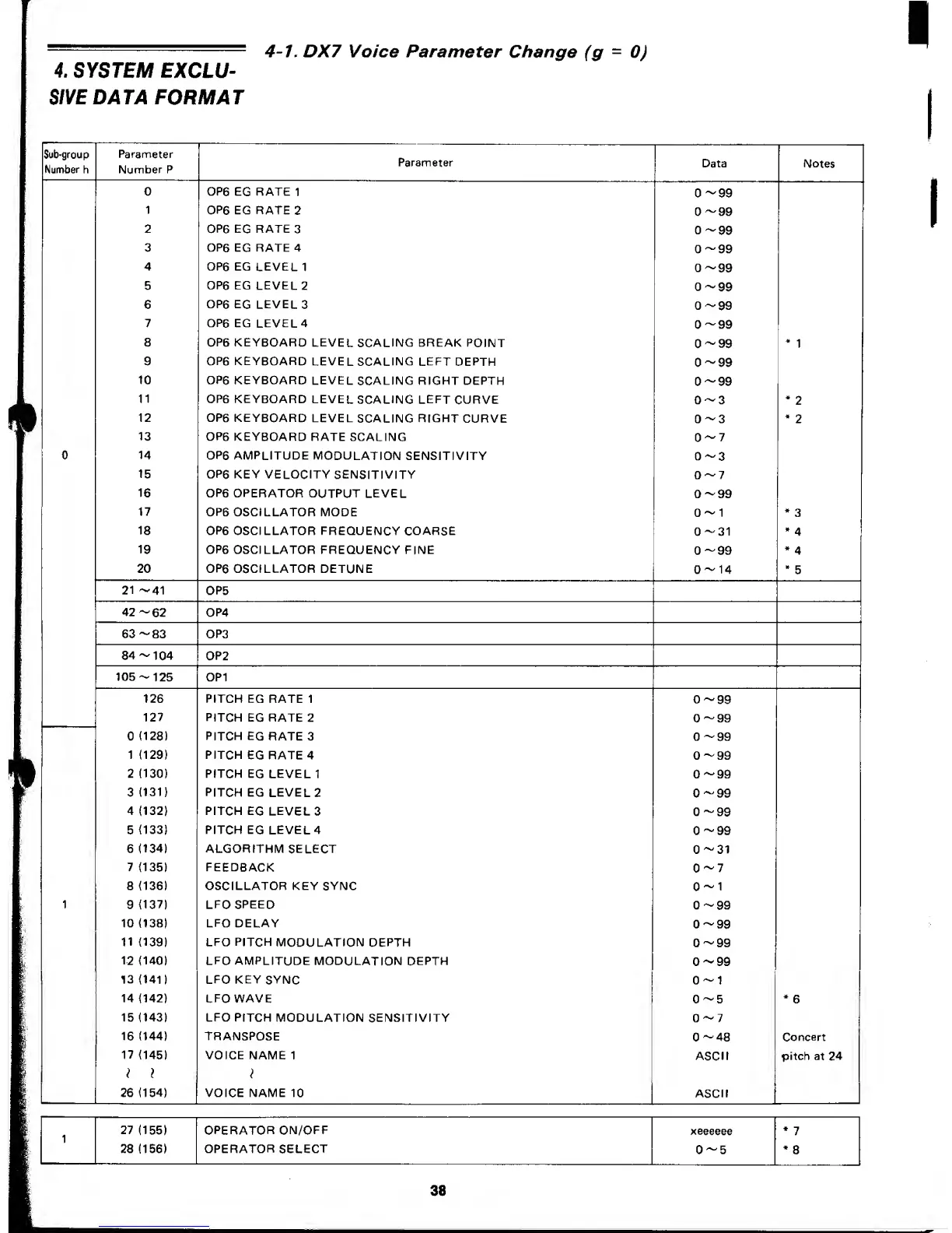 Yamaha TX7 - System Exclusive Data Format; DX7 Voice Parameter Change
