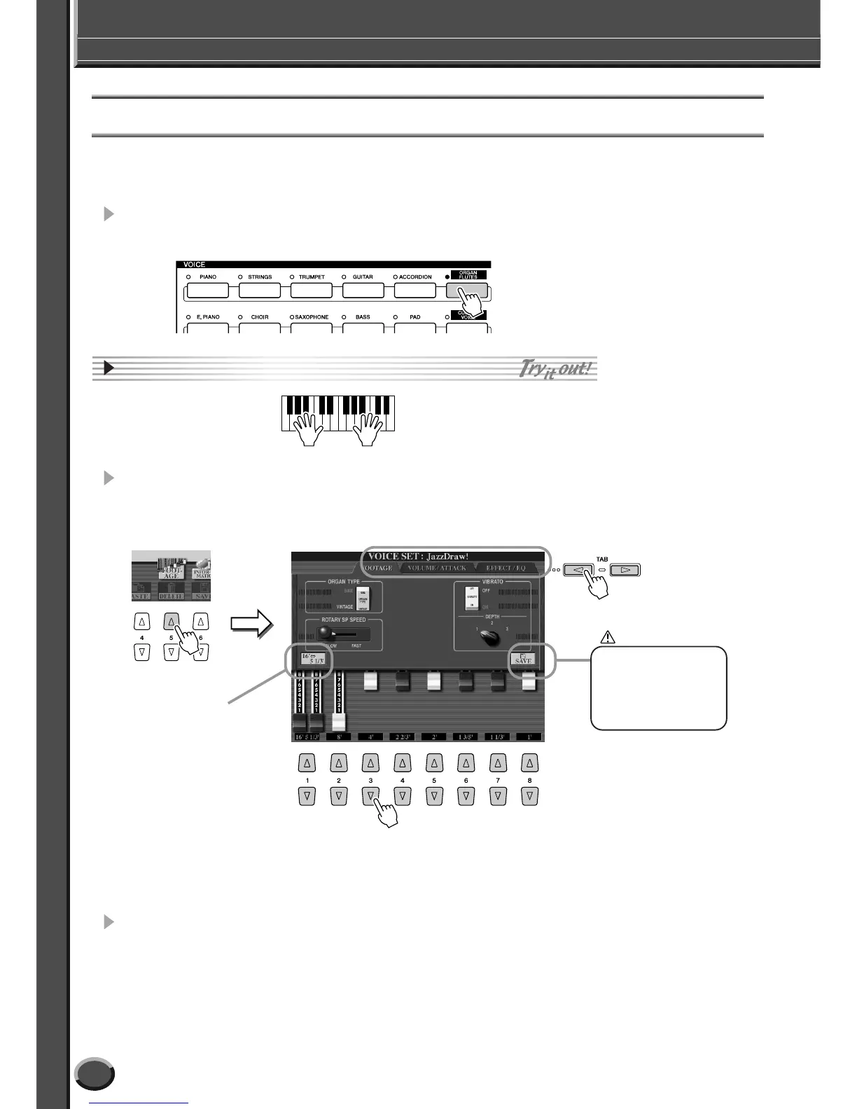 1 Press the [ORGAN FLUTES] button to call up the Organ Flutes