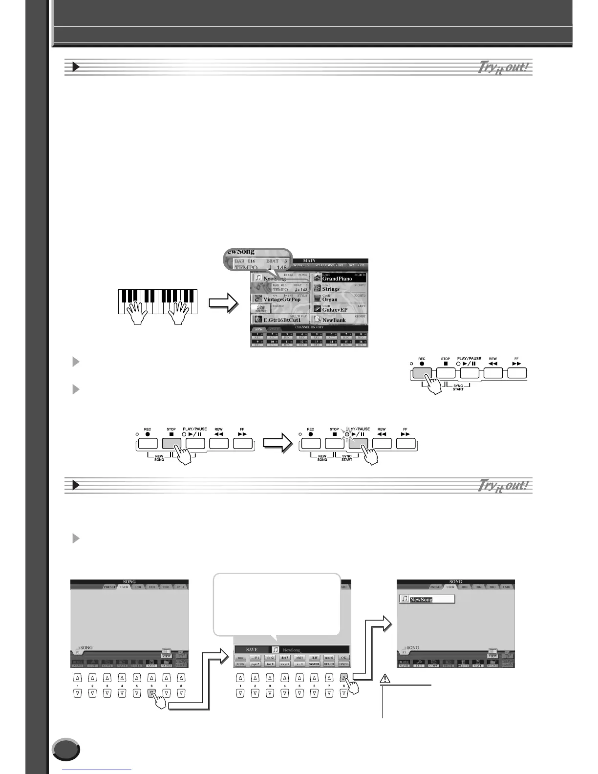 8 Make sure to save the song data to the USER or USB drive when recording is completed.