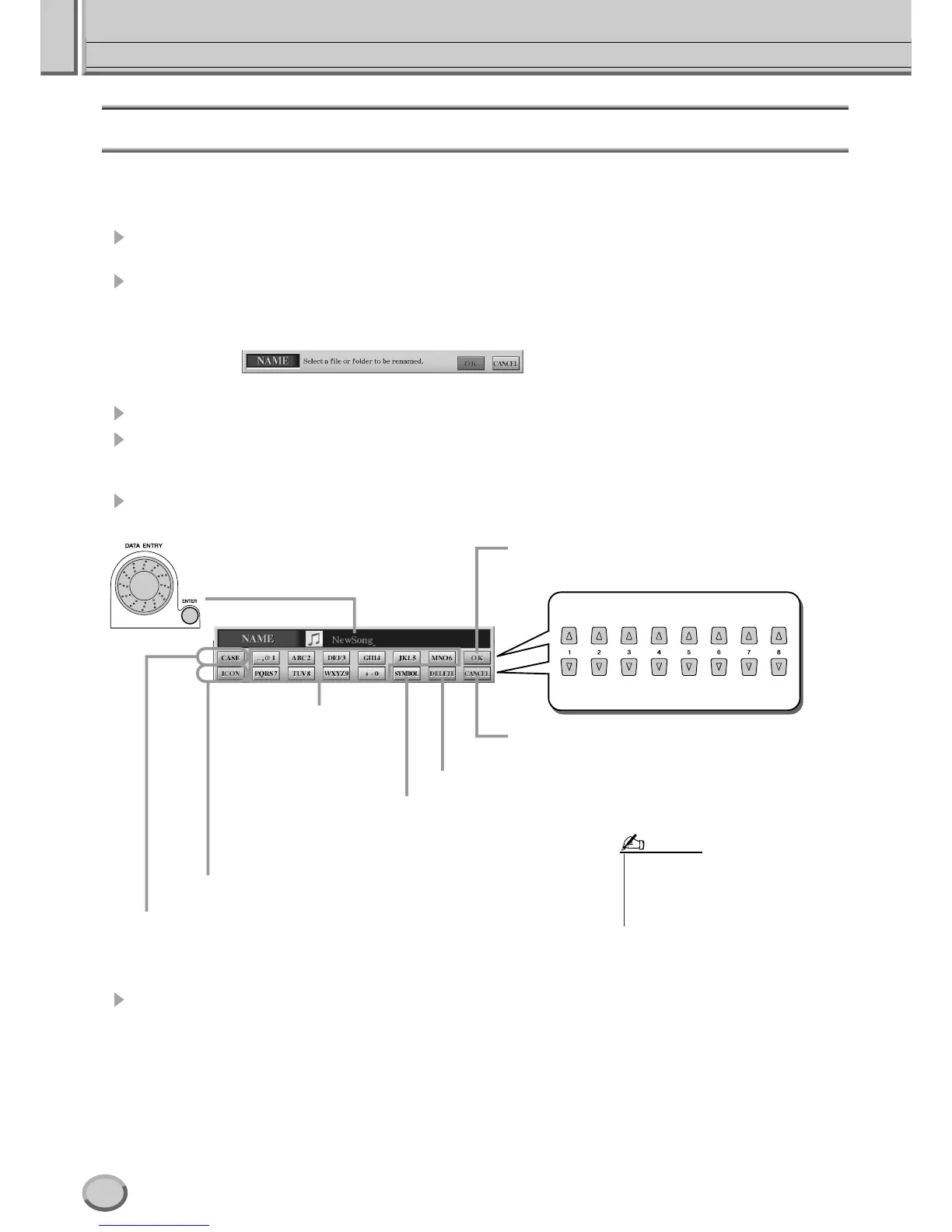 The instructions below apply when calling up the Name operation from the Open/Save display. For other cases, go directly to step