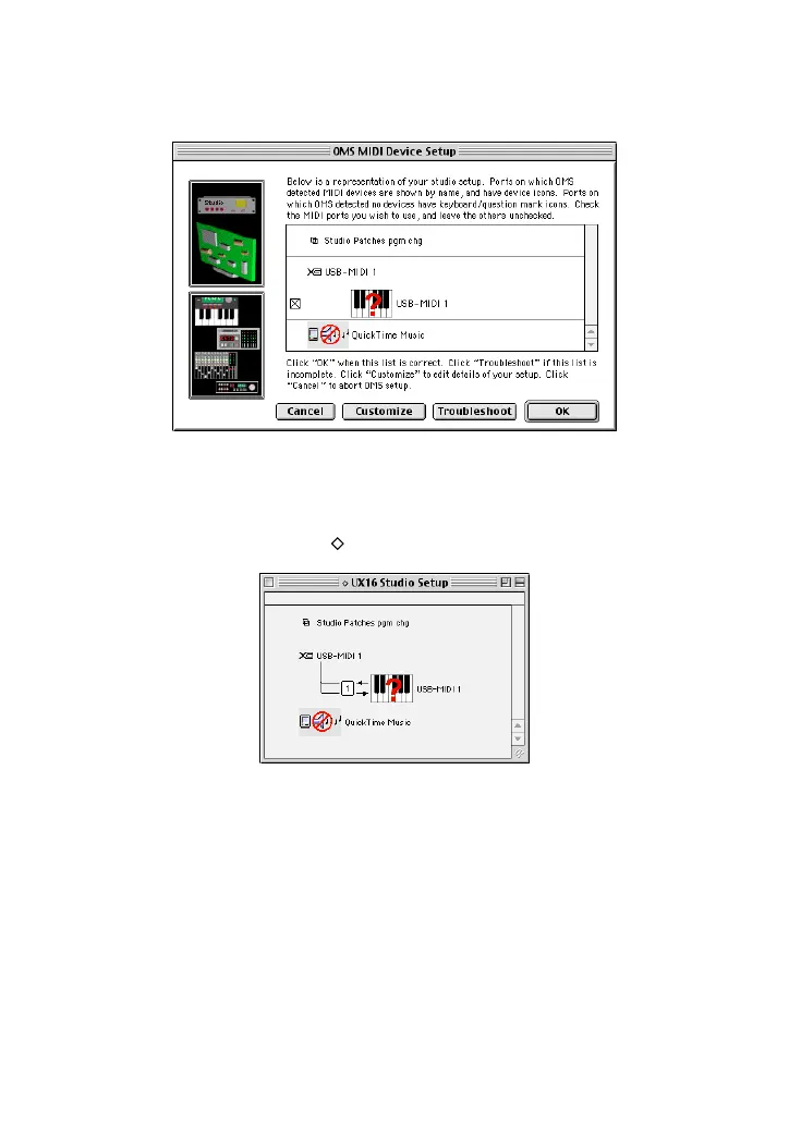 8. Make sure that “USB-MIDI 1” is displayed in the “OMS MIDI Device Setup” dia-