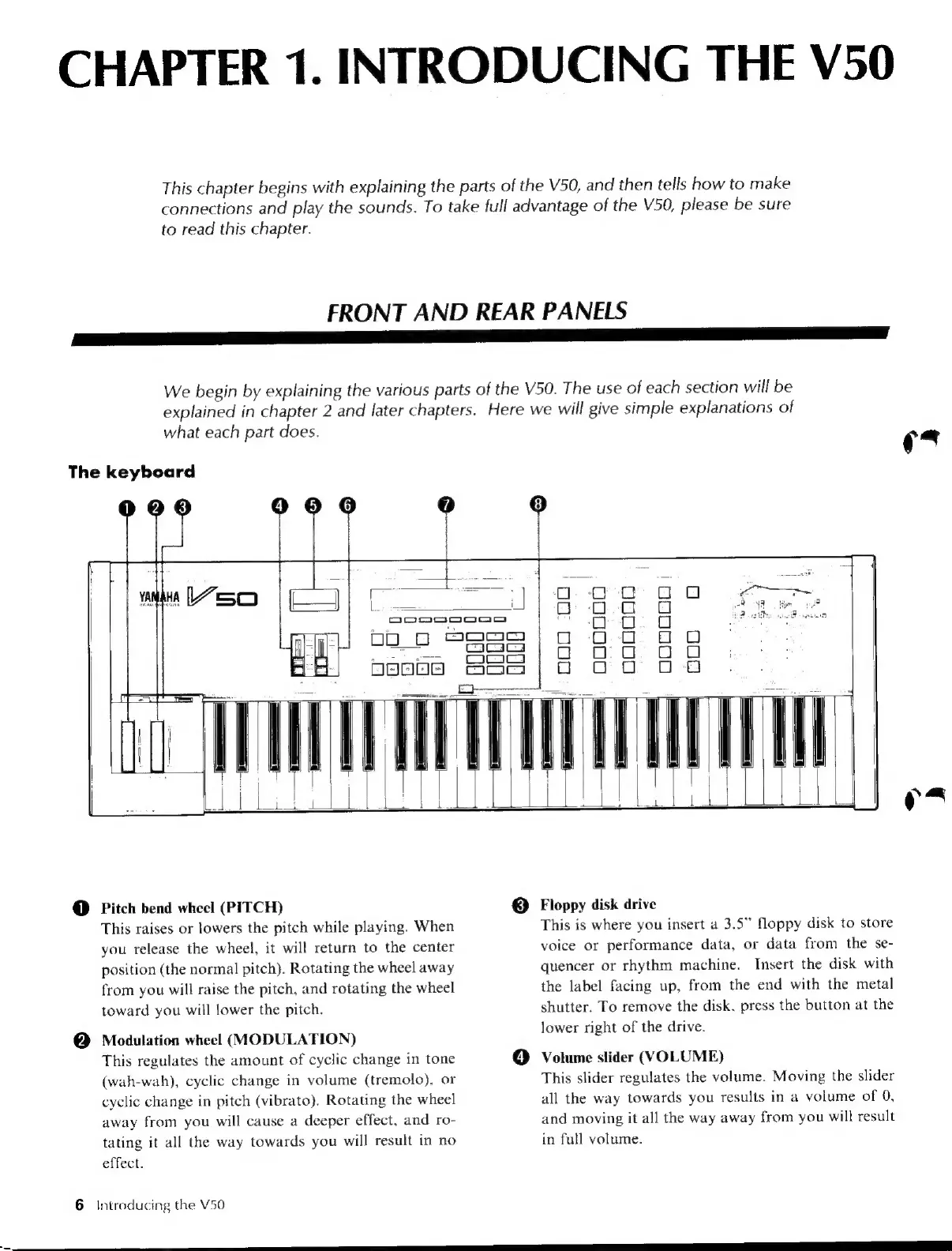 Yamaha V50 - Chapter 1 Introducing the V50; Front and Rear Panels