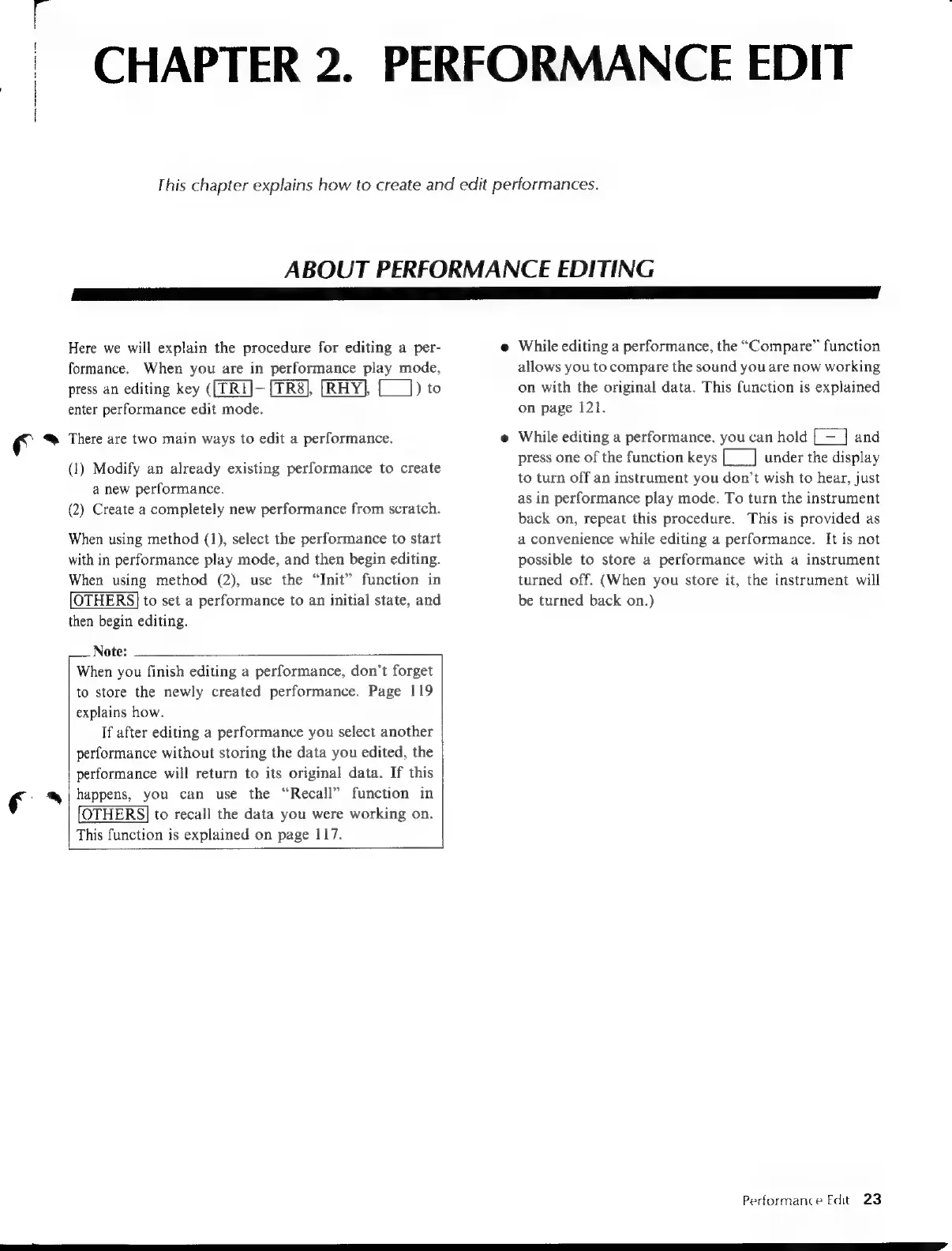 Yamaha V50 - Chapter 2 Performance Edit; About Performance Editing