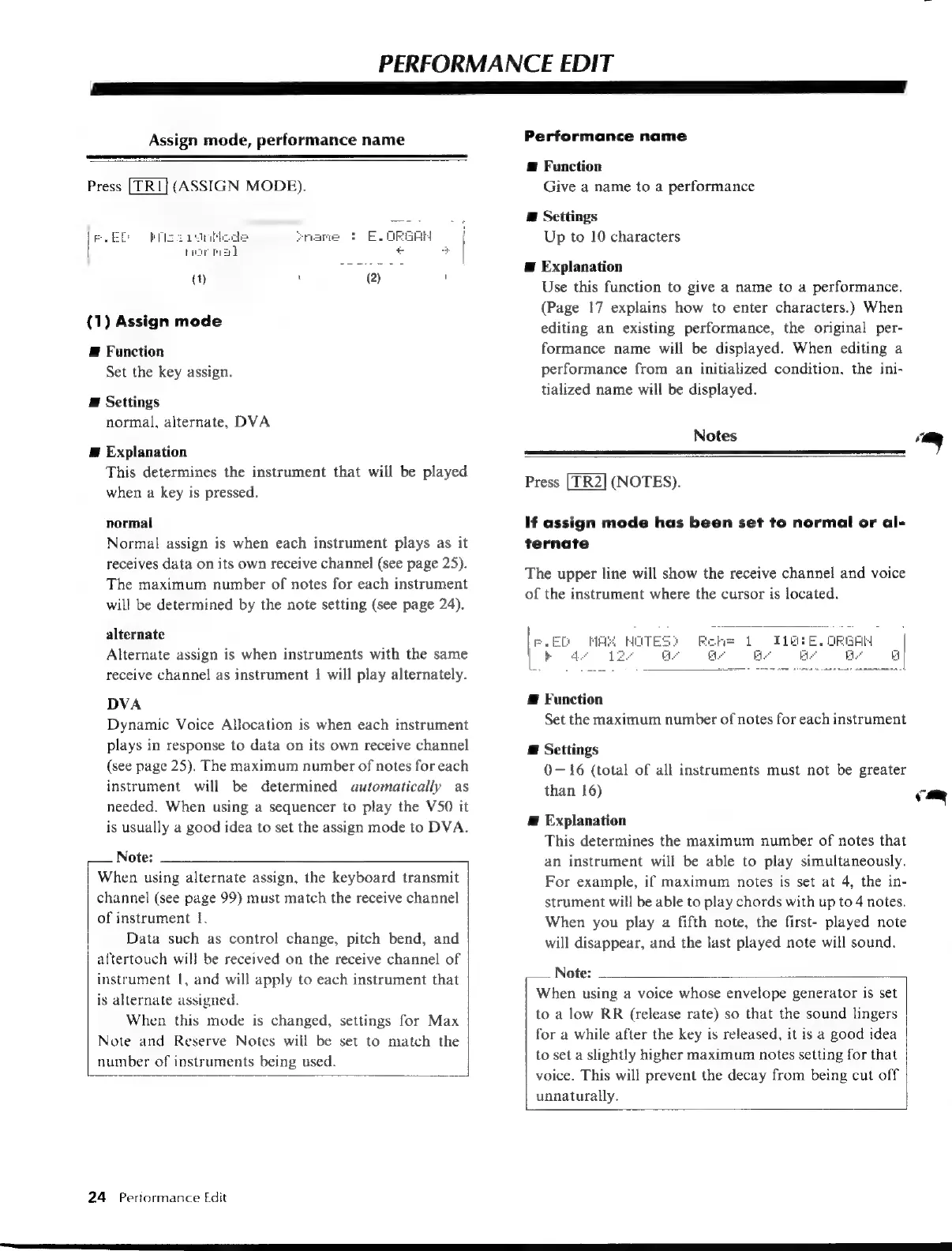 Yamaha V50 - A Scat Seta Aves; Assign Mode, Performance Name