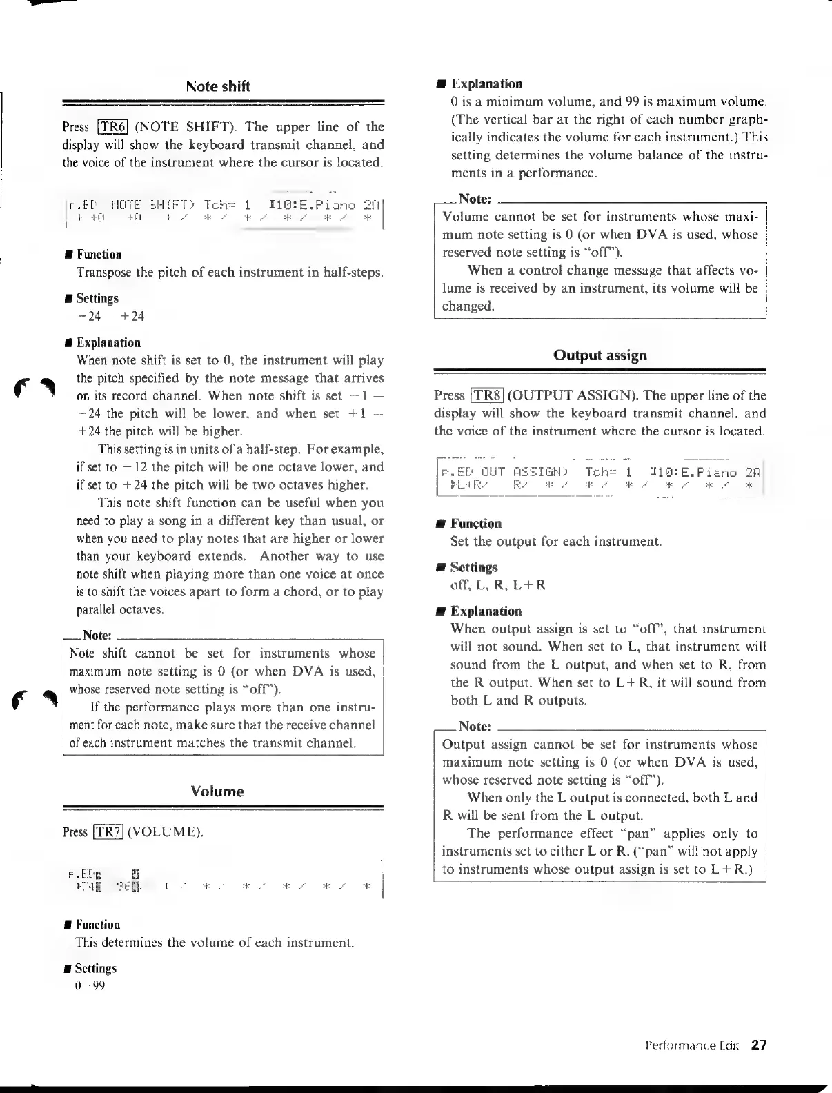 Yamaha V50 - Effect Balance and Output Settings