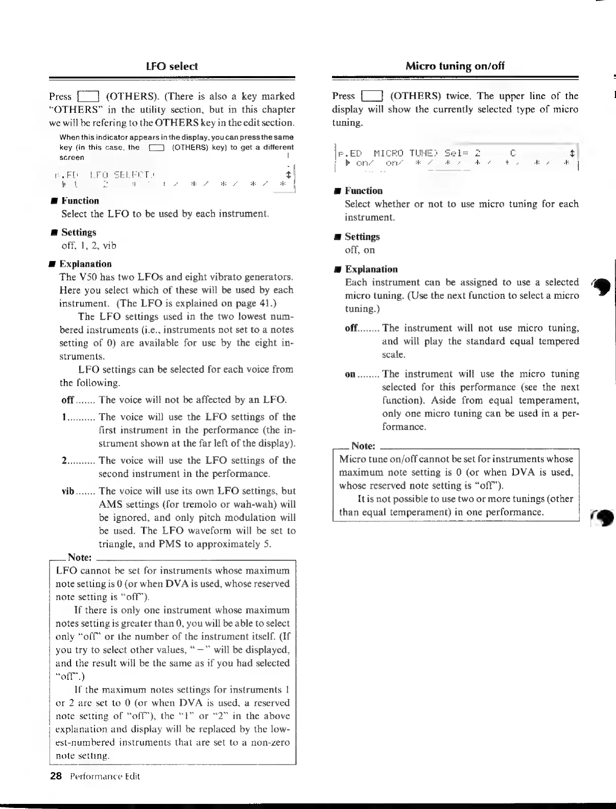 Yamaha V50 - LO! Select:S2 Cch Este Nee Aeneas; Micro Tuning On;Off