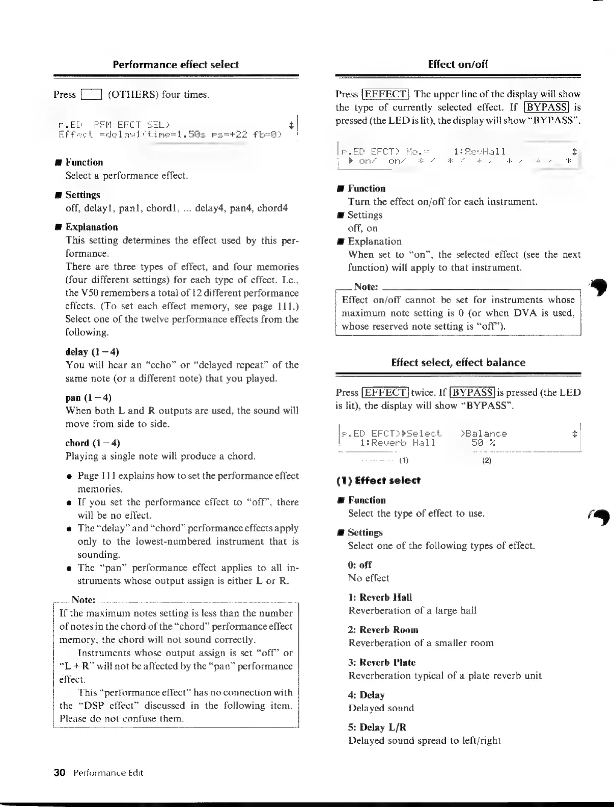 Yamaha V50 - Performance Effect Select; Effect: On;Off O Ranae Na Auctest. Dor Ieeveanede; Effect Select, Effect Balance; Eeeeeeeees