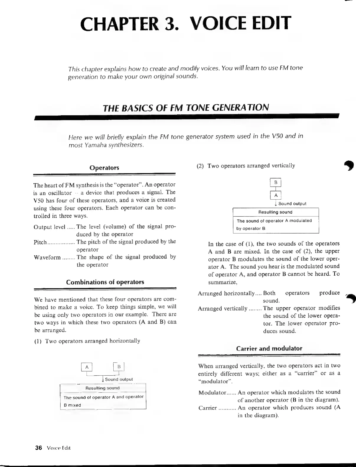 Yamaha V50 - CHAPTER 3. VOICE EDIT; FM Synthesis Basics