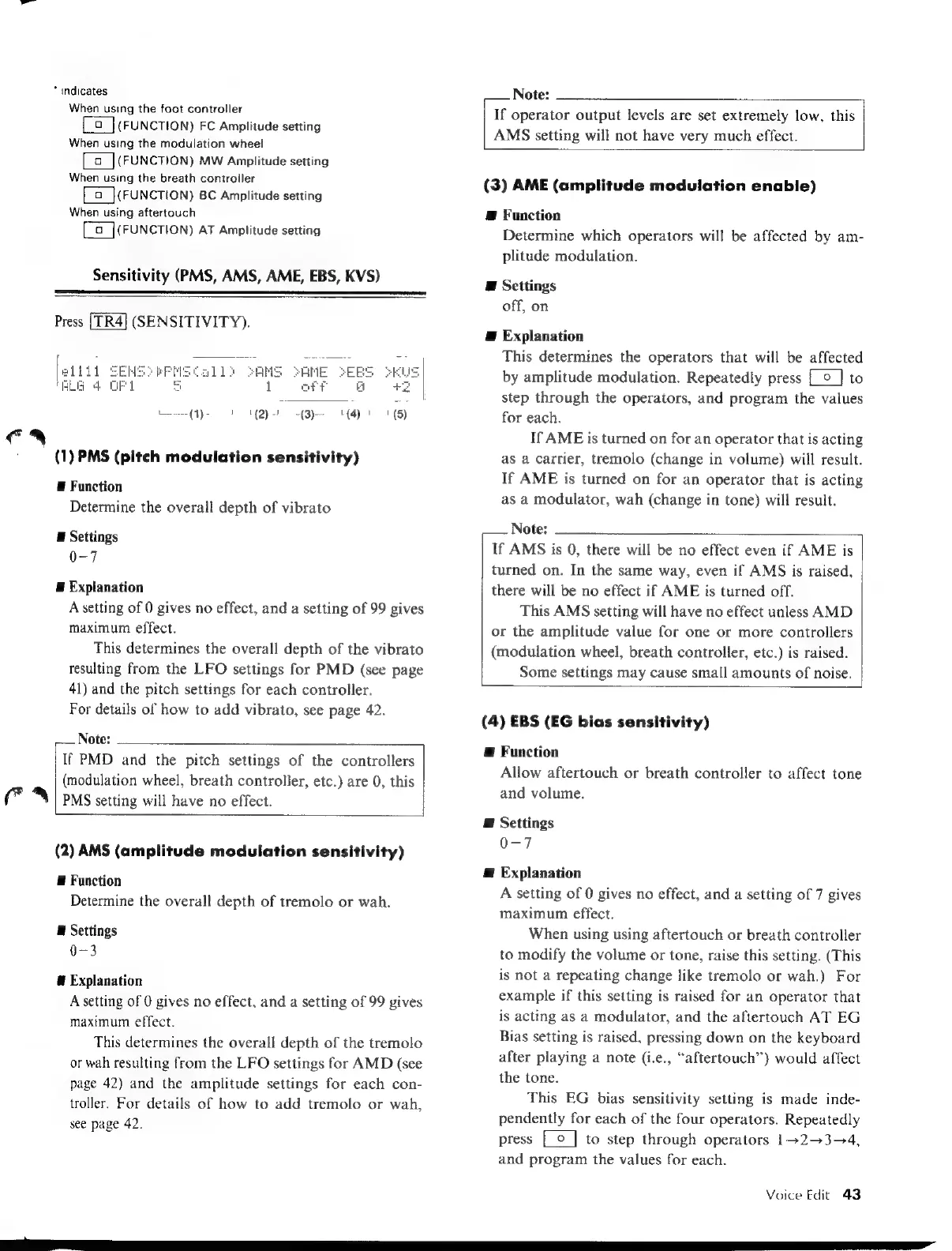 Yamaha V50 - Sensitivity (PMS, AMS, AME, EBS, KVS)
