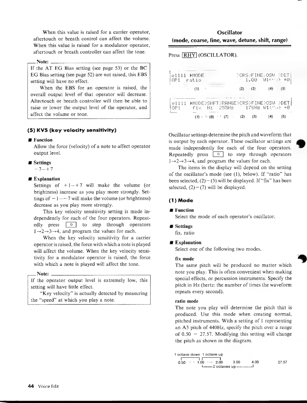 Yamaha V50 - Operator and Oscillator Parameters