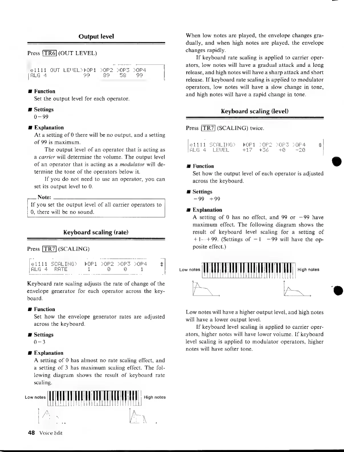 Yamaha V50 - Output Level; Keyboard Scaling (Rate); Keyboard Scaling (Level)
