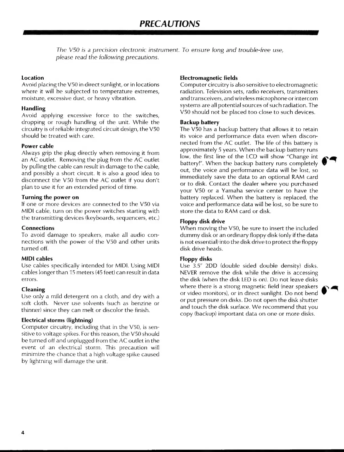 Yamaha V50 - PRECAUTIONS; Safe Handling and Environment