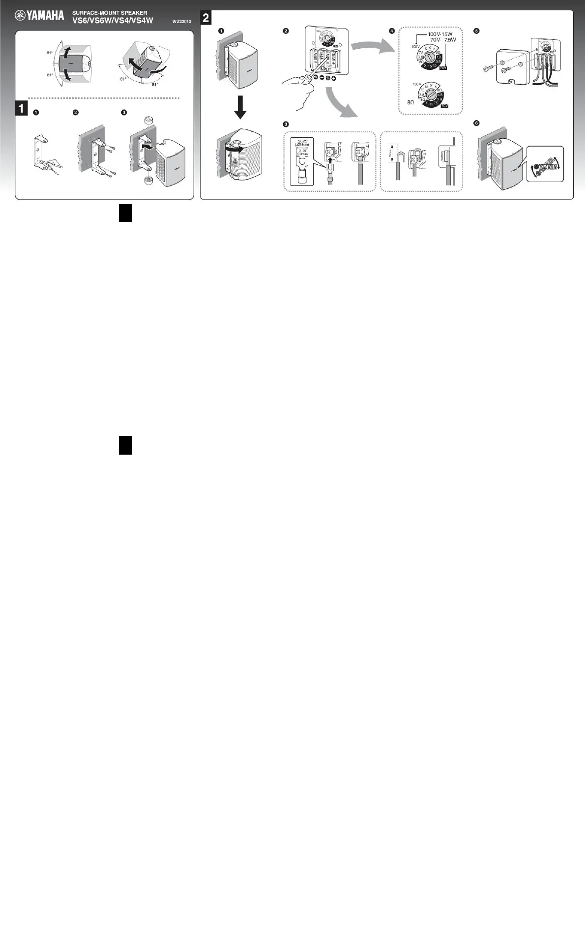 To wall/ceiling mount the speakers, use the included brackets. Before installing the
