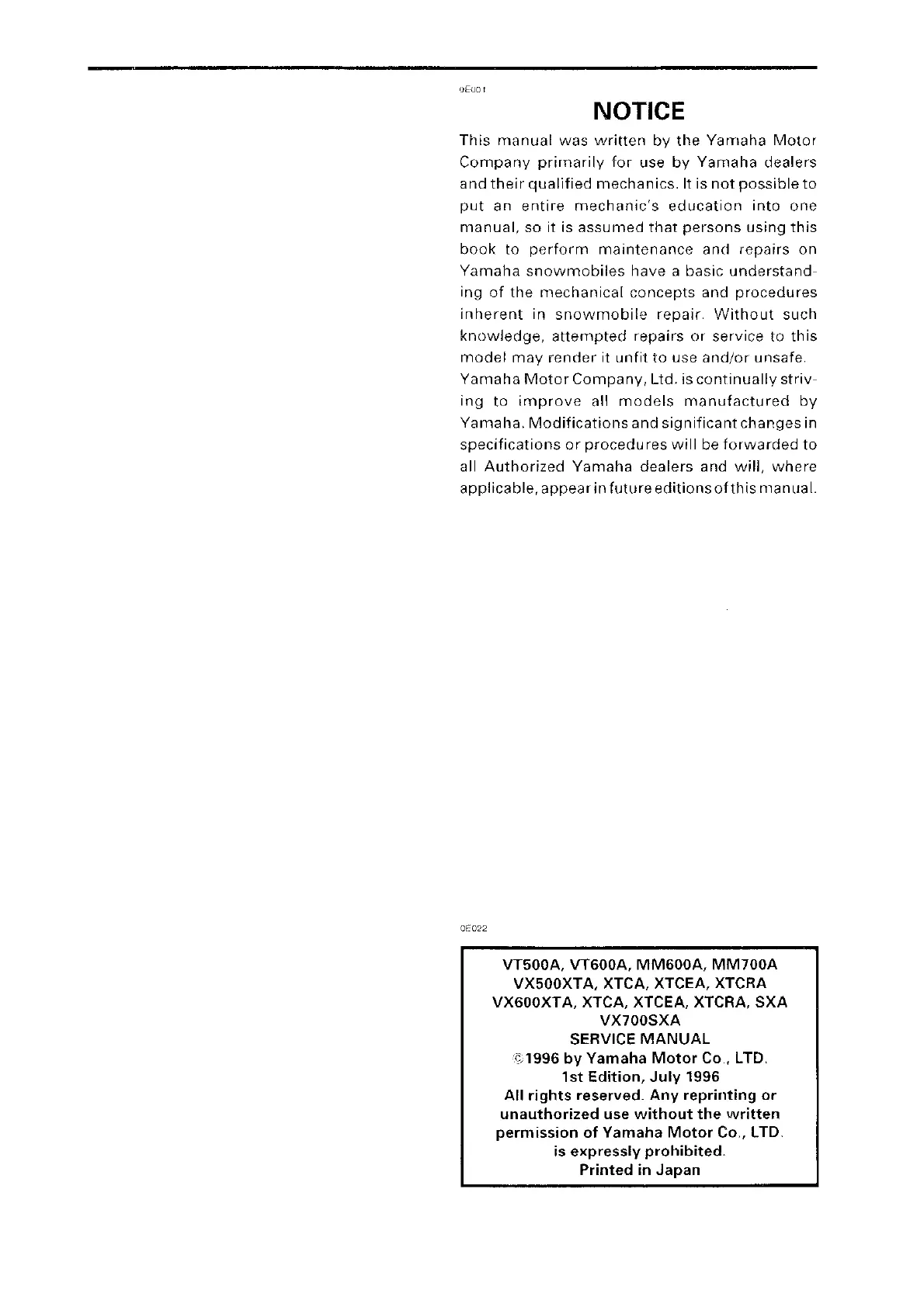 Yamaha VT500A - default chapter; Notice