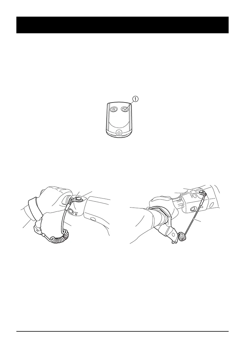 Motor-Quickstoppschalter 4. Die Motor-Quickstoppleine von den Lenkergriffen fernhalten, so