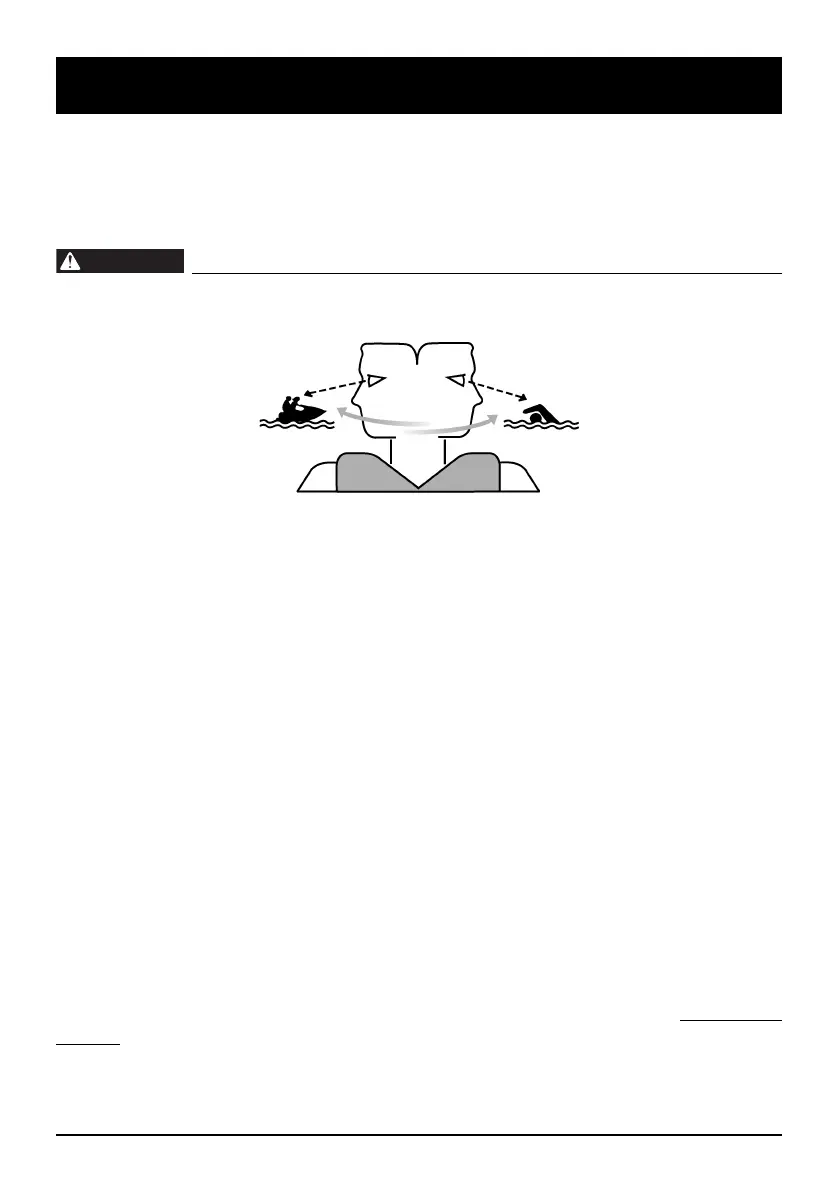 Scan constantly for people, objects, and other watercraft. Be alert for conditions that