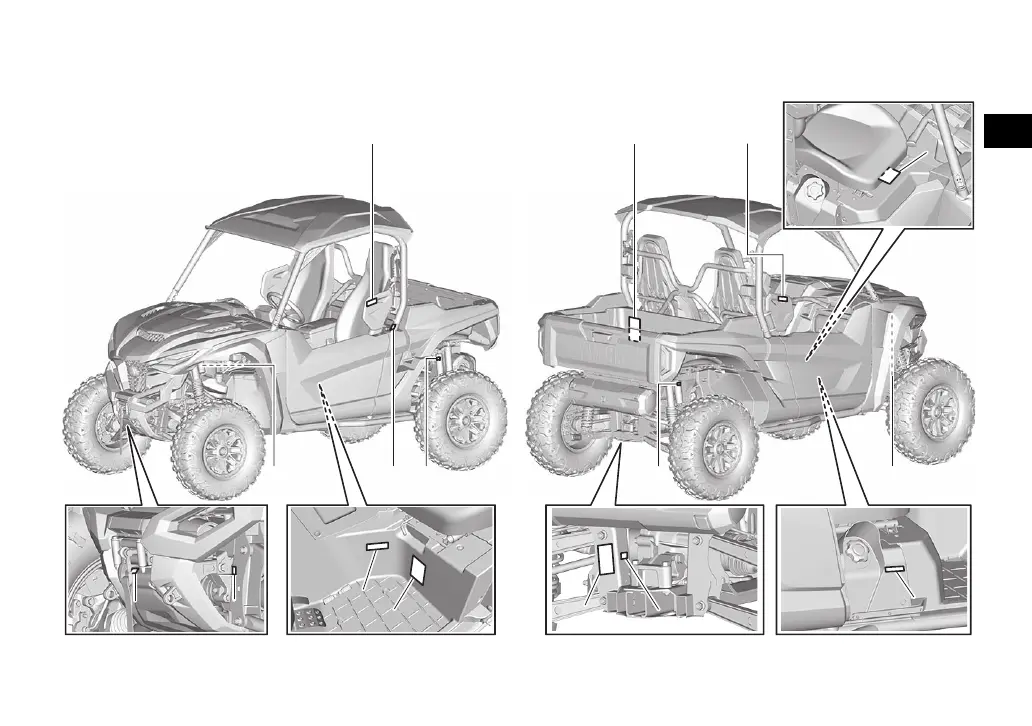 Yamaha Wolverine RMAX - Location of Warning and Specification Labels