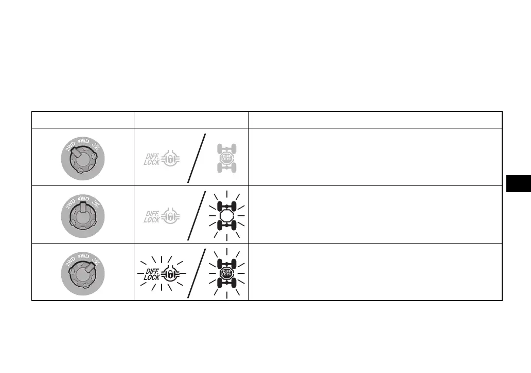 For example, the vehicle requires more effort to turn in “DIFF. LOCK” than in “2WD”. Always stop