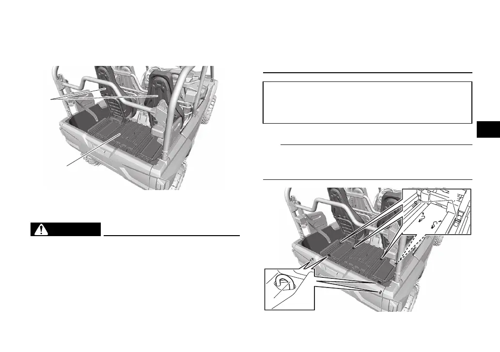 Use the cargo hooks to tie down loads. (See