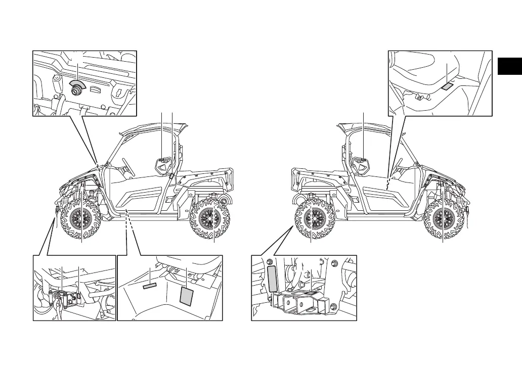 Yamaha Wolverine X2 - Location of the Warning and Specification Labels