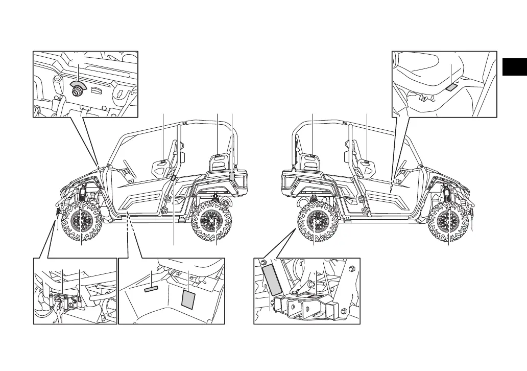 Yamaha WOLVERINE X4 2021 - Location of the Warning and Specification Labels