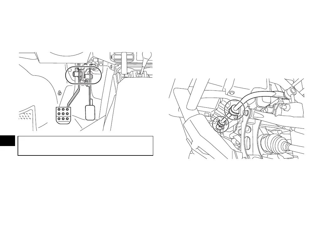 The pivoting parts of the brake and accelera-