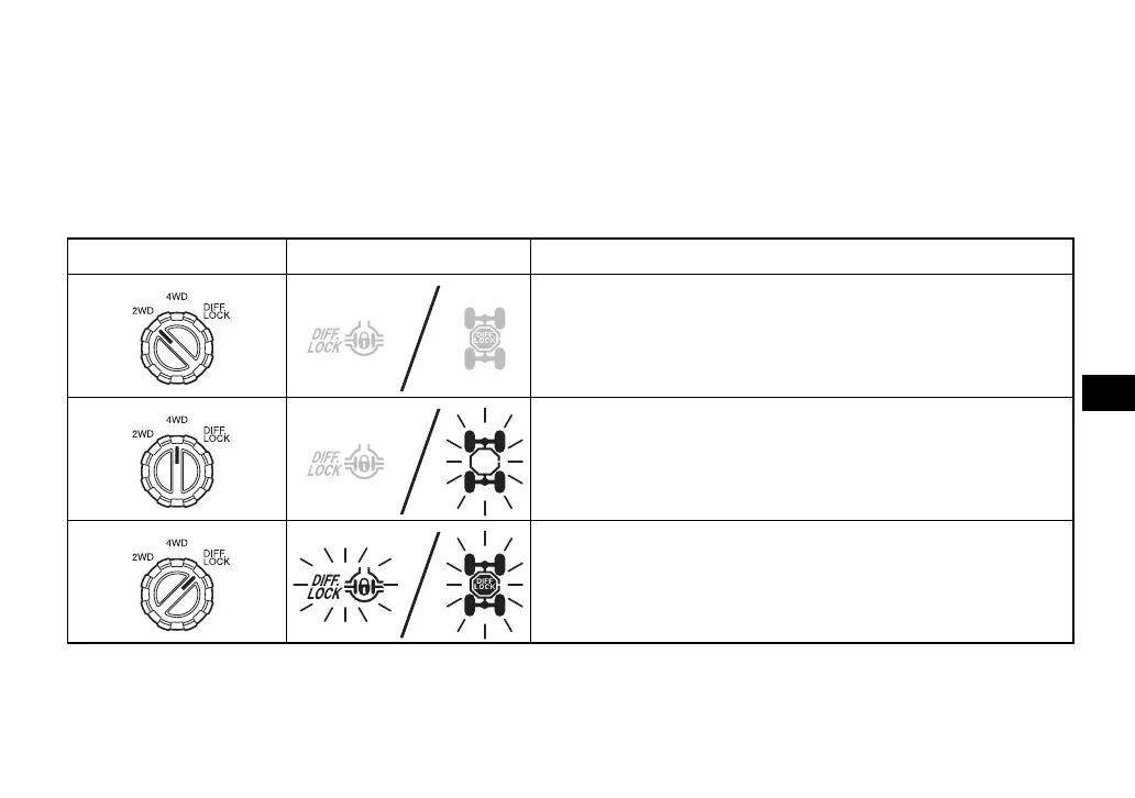 For example, the vehicle requires more effort to turn in “DIFF. LOCK” than in “2WD”. Always stop