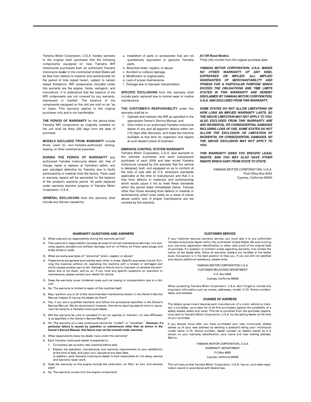 YAMAHA MOTOR CORPORATION, U.S.A. WR MOTORCYCLE LIMITED