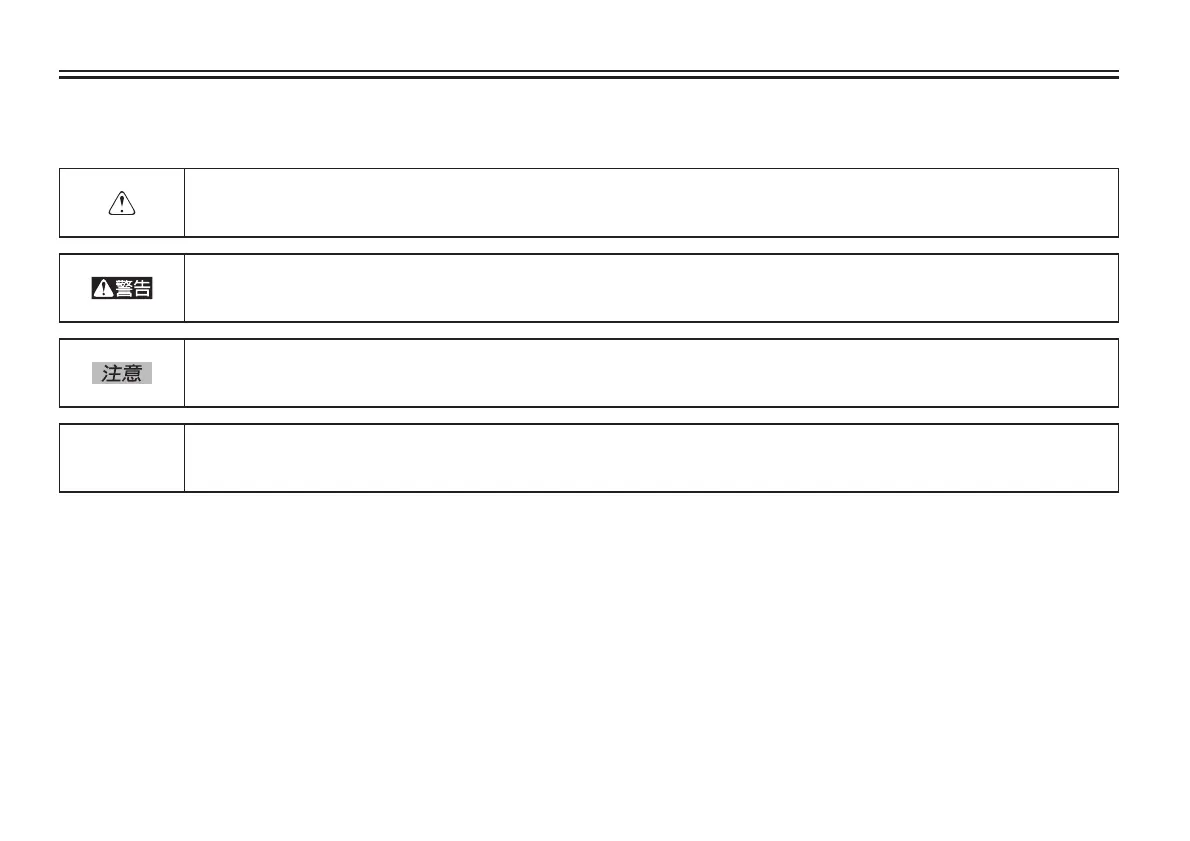 這是「警告」符號。此符號內的說明,是告知您某個危險狀況。如果沒有避開該危險狀況時,將會導致死