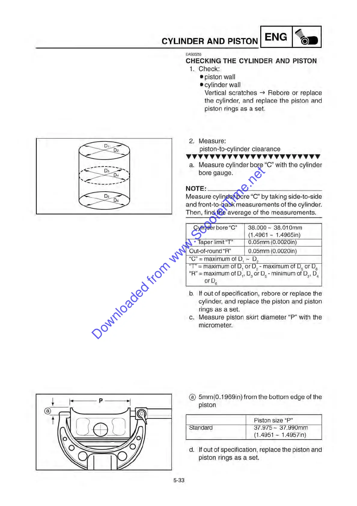 CHECKING THE CYLINDER AND PISTON