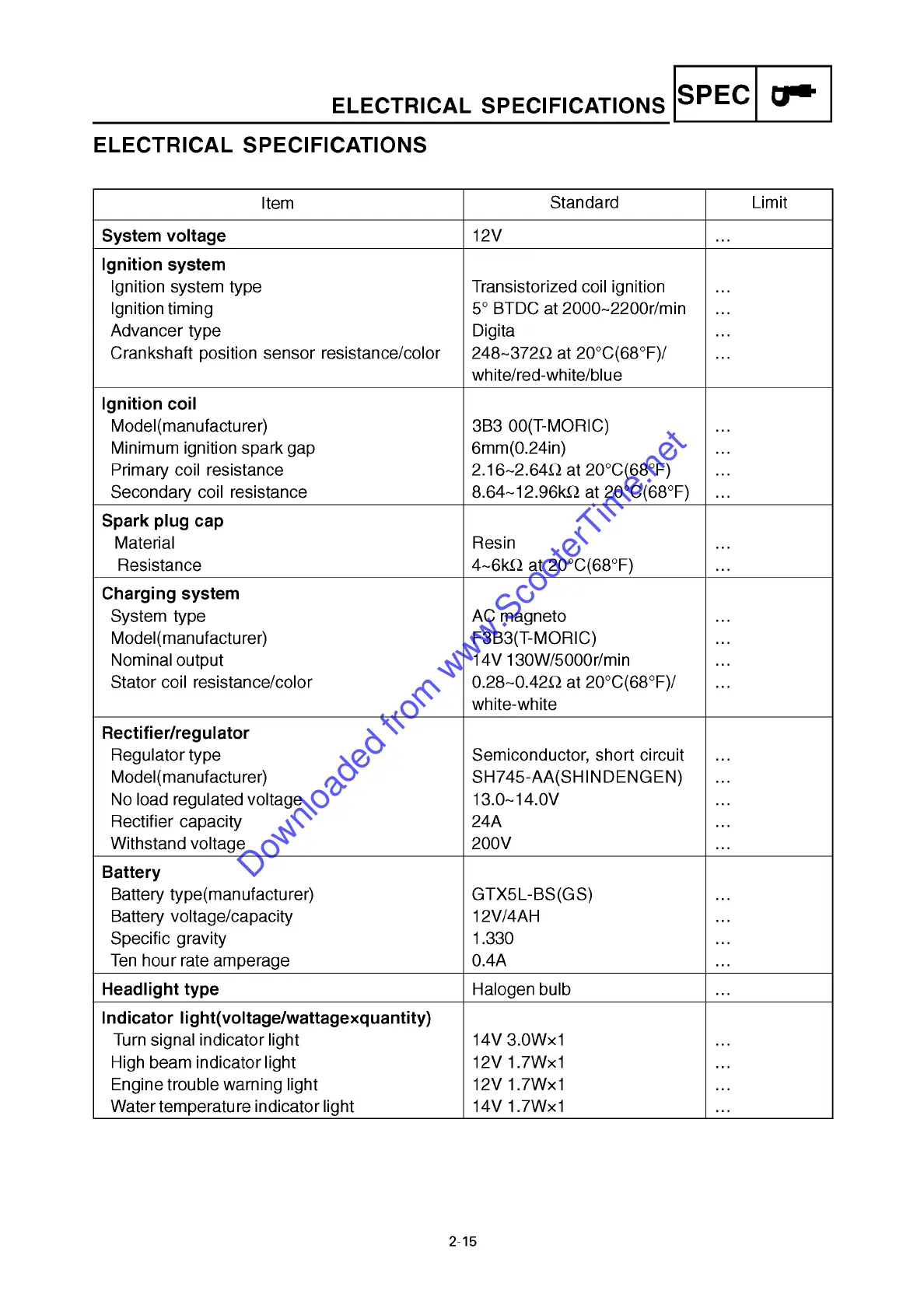 Ignition timing 5° BTDC at 2000~2200r/min …