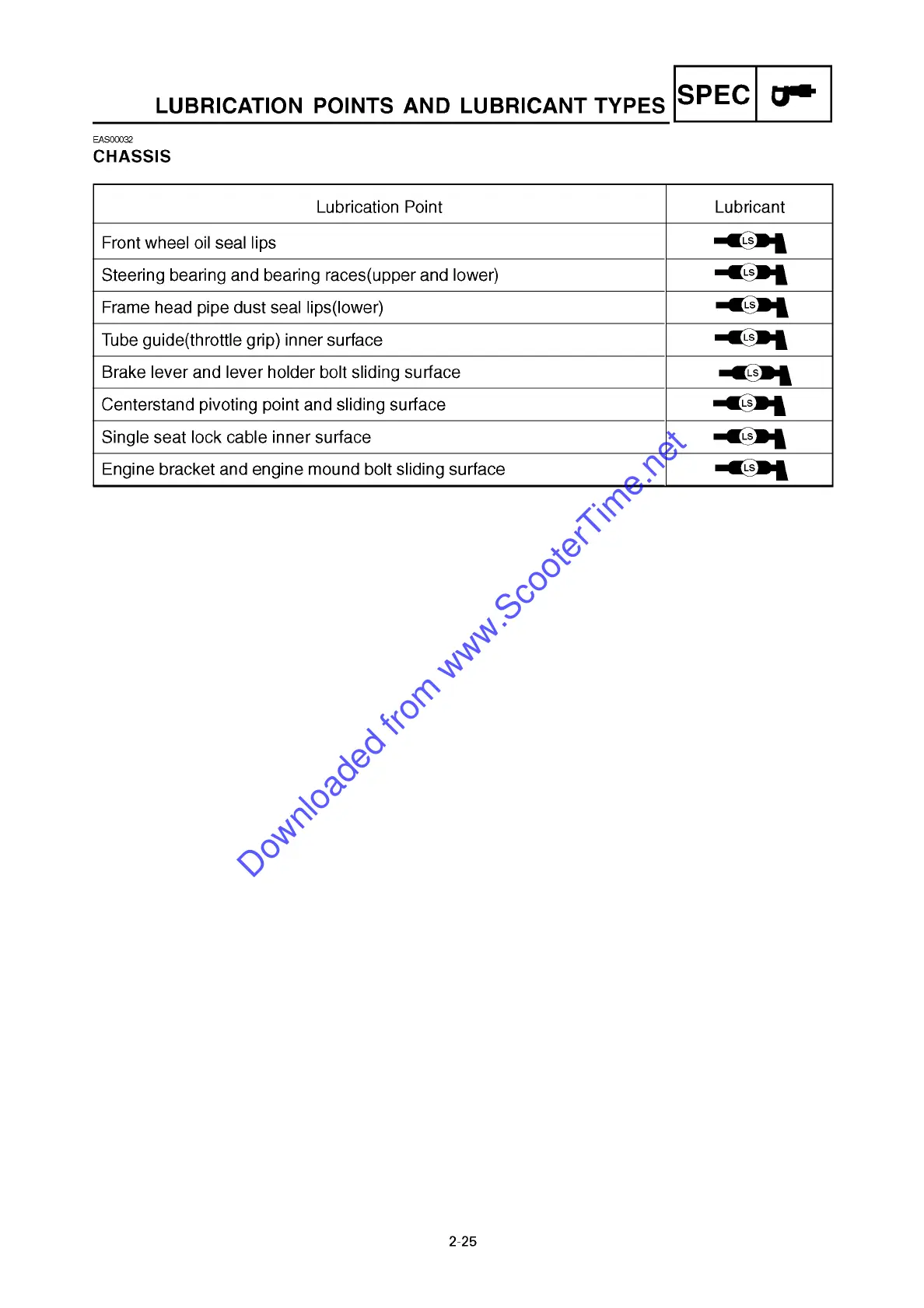 LUBRICATION POINTS AND LUBRICANT TYPES