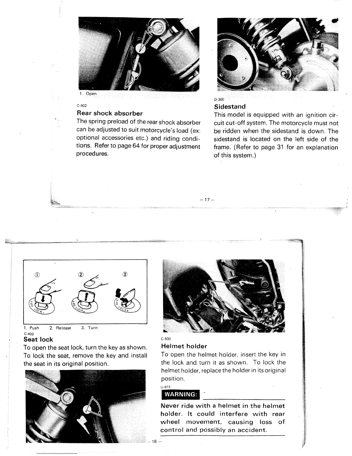 Yamaha XJ700N - Chassis and Accessories; Sidestand Operation Warning