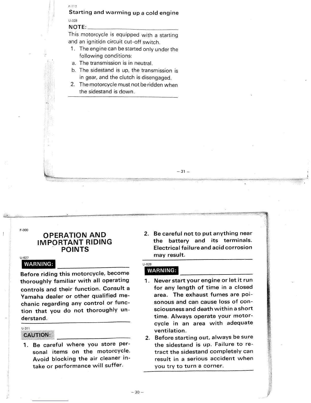 Yamaha XJ700N - Operation and Riding Points; Riding Warnings and Cautions