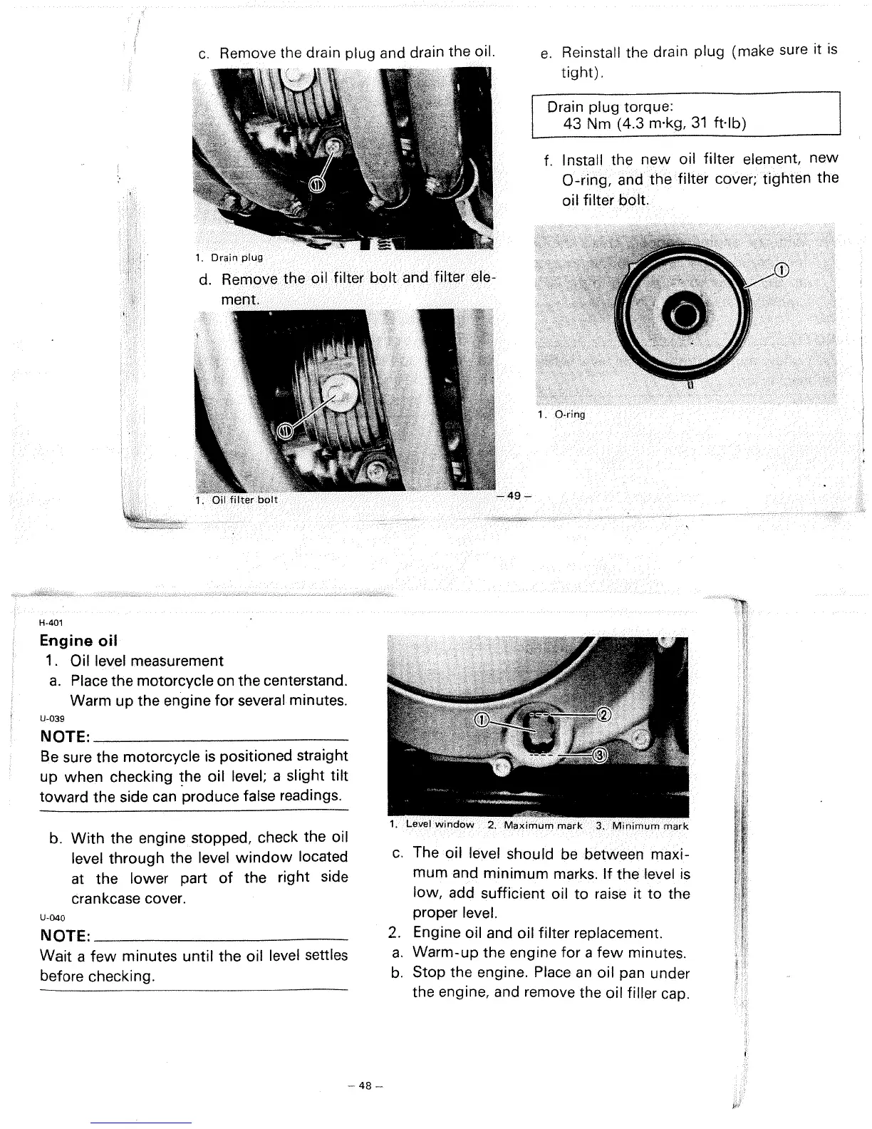 Yamaha XJ700N - Engine Oil Service; Engine Oil Level Measurement; Engine Oil and Filter Replacement