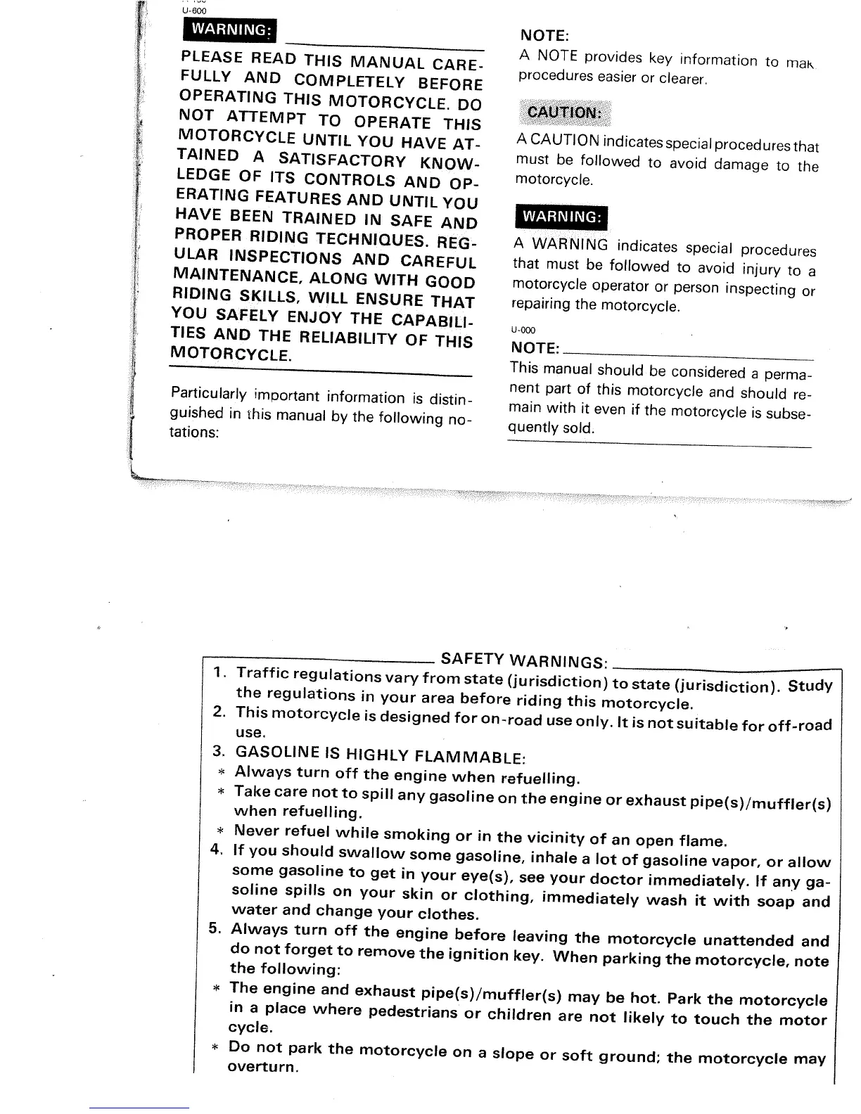 Yamaha XJ700N - Safety and Operational Guidelines; Warning and Caution Notations; General Safety Warnings