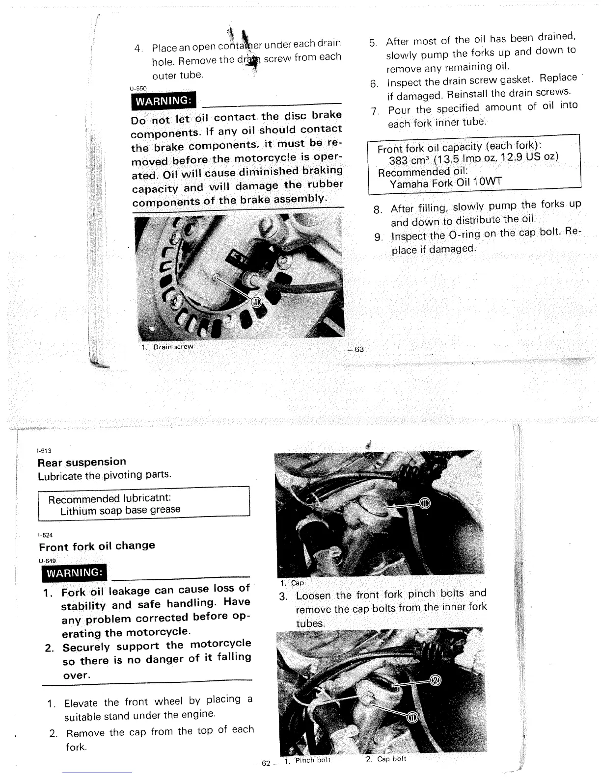 Yamaha XJ700N - Front Fork Service; Front Fork Oil Change Procedure