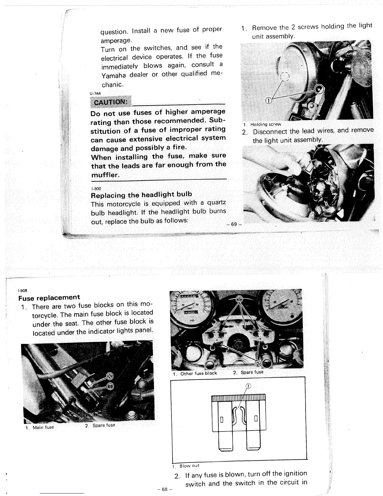 Yamaha XJ700N - Electrical System Maintenance; Fuse Replacement Procedure; Headlight Bulb Replacement