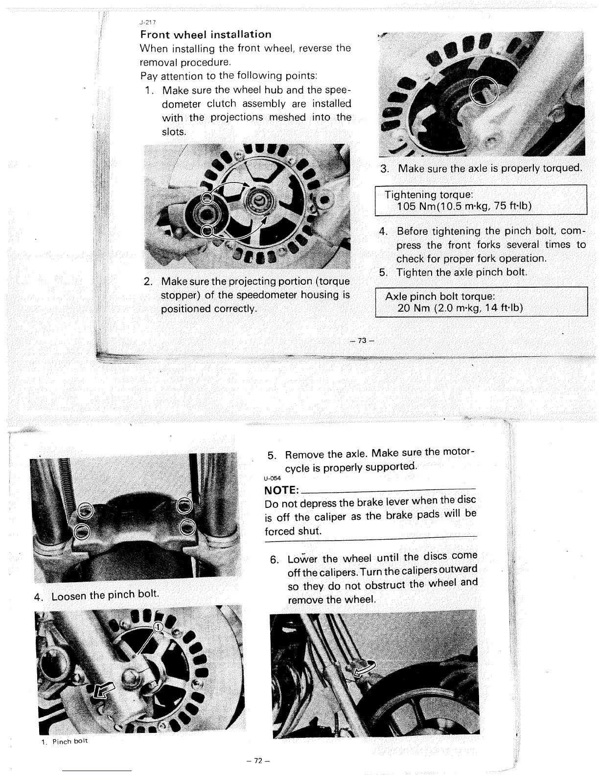 Yamaha XJ700N - Front Wheel Installation; Front Wheel Installation Procedure