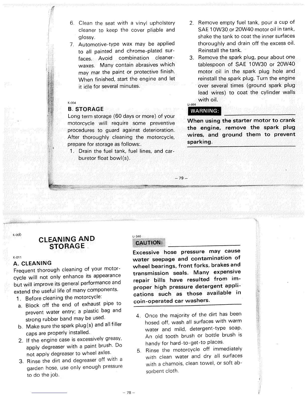 Yamaha XJ700N - Cleaning and Storage; Motorcycle Cleaning Procedures; Motorcycle Storage Procedures