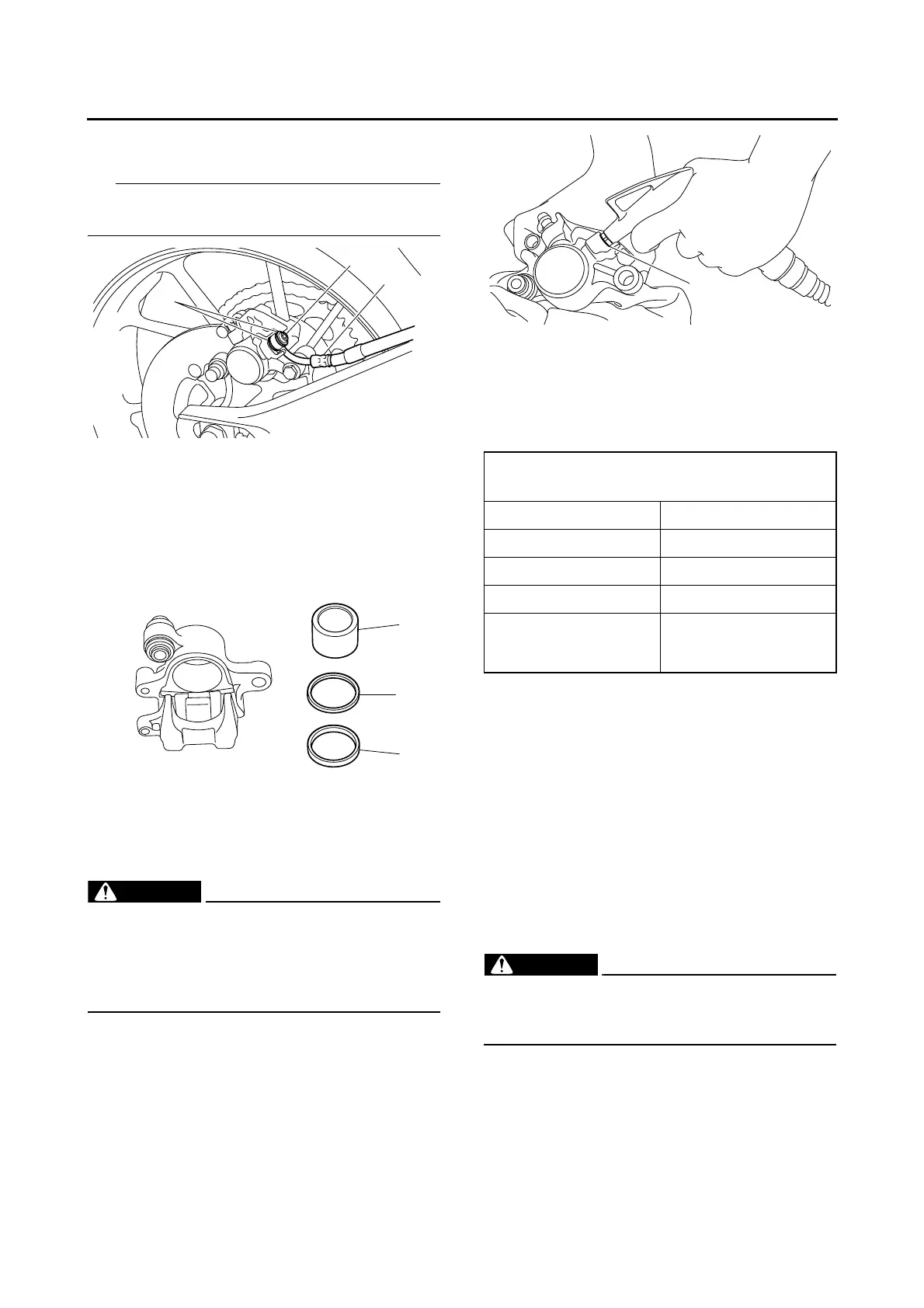 • Never try to pry out the brake caliper pis-