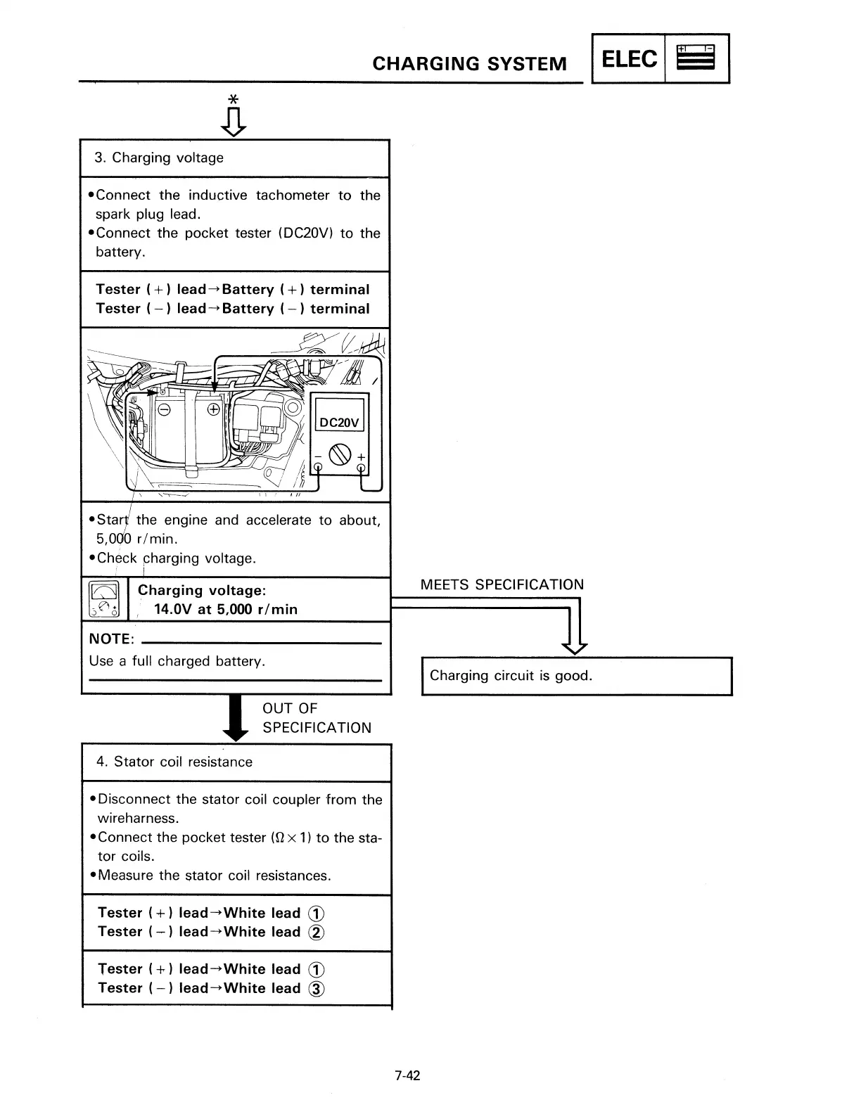 Yamaha XT225-C - Charging Voltage; Stator Coil Resistance