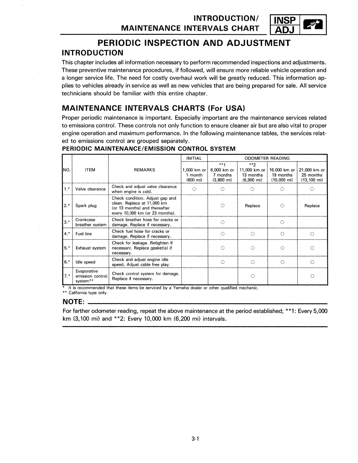Yamaha XT225-C - Maintenance Intervals Charts; Periodic Inspection and Adjustment; Periodic Maintenance;Emission Control System