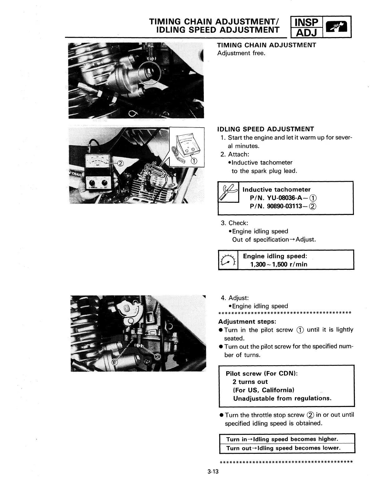 Yamaha XT225-C - Idling Speed Adjustment; Timing Chain Adjustment