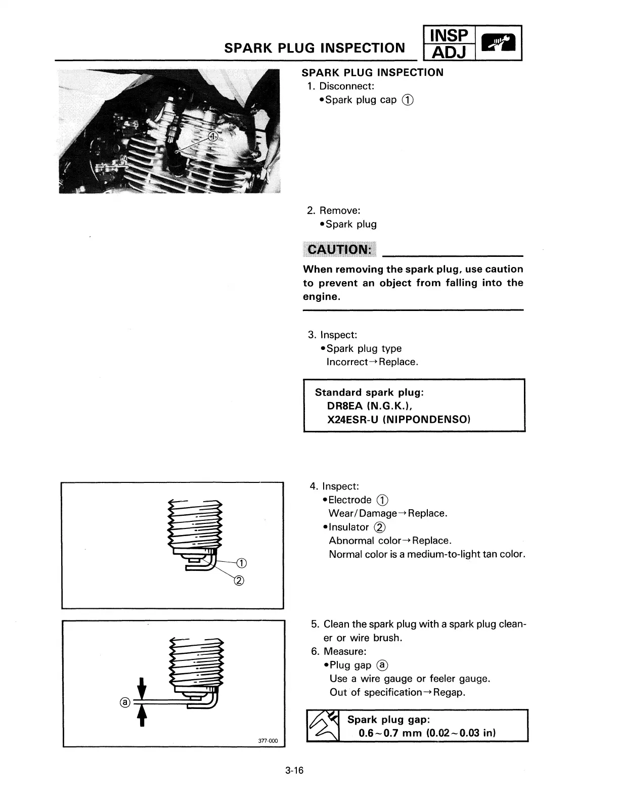 Yamaha XT225-C - Standard Spark Plug; Spark Plug Inspection